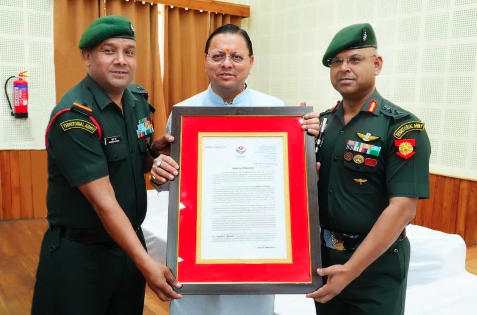 देहरादून| 127 इन्फैंट्री बटालियन टेरिटोरियल आर्मी (इकोलॉजिकल), गढ़वाल राइफल्स को वर्ष 2025–26 हेतु उत्तराखंड सरकार द्वारा मुख्यमंत्री प्रशंसा पुरस्कार से सम्मानित किया गया है।