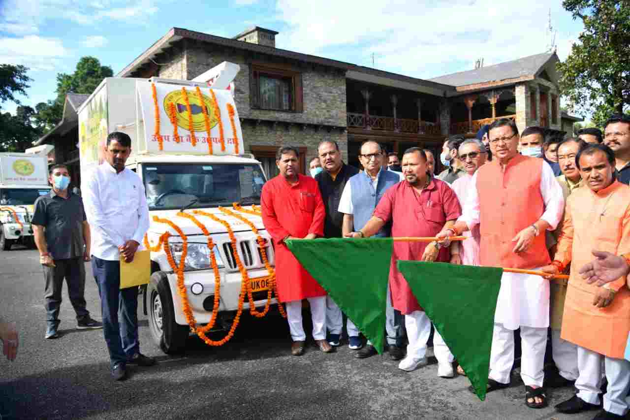 मुख्यमंत्री पुष्कर सिंह धामी ने शुक्रवार को मुख्यमंत्री आवास में सहकारी बैंक की 10 मोबाईल एटीएम वैन का फ्लैग ऑफ किया। ये मोबाईल एटीएम वैन राज्य के विभिन्न जनपदों में जाकर लोगों को पैसे निकालने की सुविधा उपलब्ध कराएगी। इस अवसर पर सहकारिता एवं स्वास्थ्य मंत्री डॉ. धन सिंह रावत भी मौजूद थे।