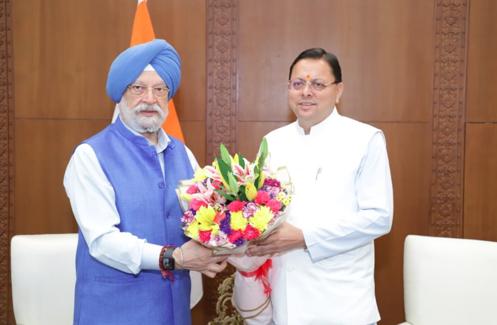 मुख्यमंत्री धामी ने केंद्रीय पेट्रोलियम एवं प्राकृतिक गैस मंत्री हरदीप सिंह पुरी से की मुलाकात