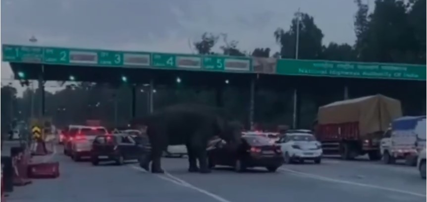 लच्छीवाला टोल प्लाज़ा पर फिर हाथी का आतंक, टोल बैरियर तोड़ा, गाड़ी पलटने की कोशिश